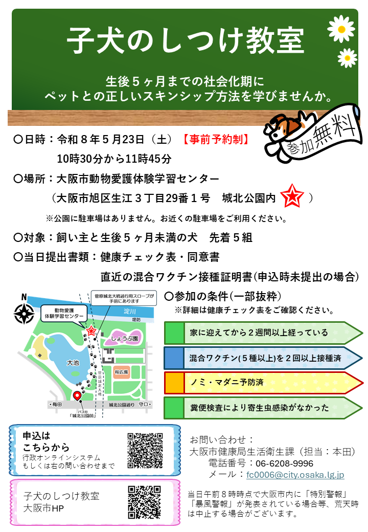 「子犬のしつけ教室」の開催について