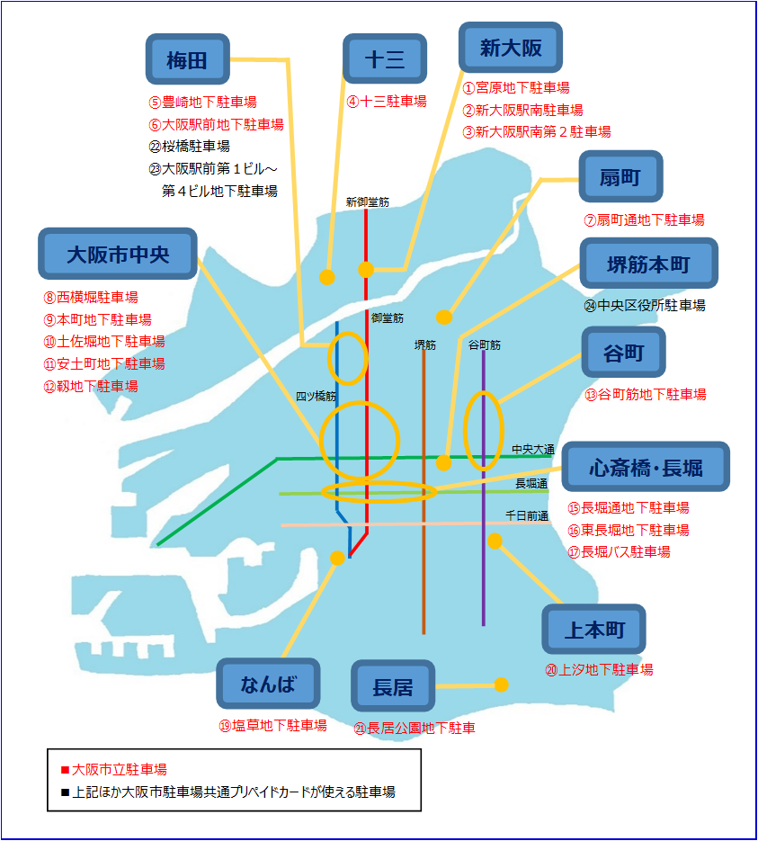市立駐車場及び大阪市駐車場共通回数券(プリペイドカード)が使用できる駐車場一覧