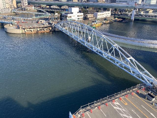 工事期間中は、船舶の航行は可能です。ただし、アーチ橋の架設時には、1週間程度の船舶の通行止めを検討しています。