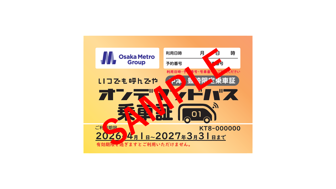 この乗車証は、大阪市高速電気軌道株式会社が運行するオンデマンドバスの次の区間に限り有効です。