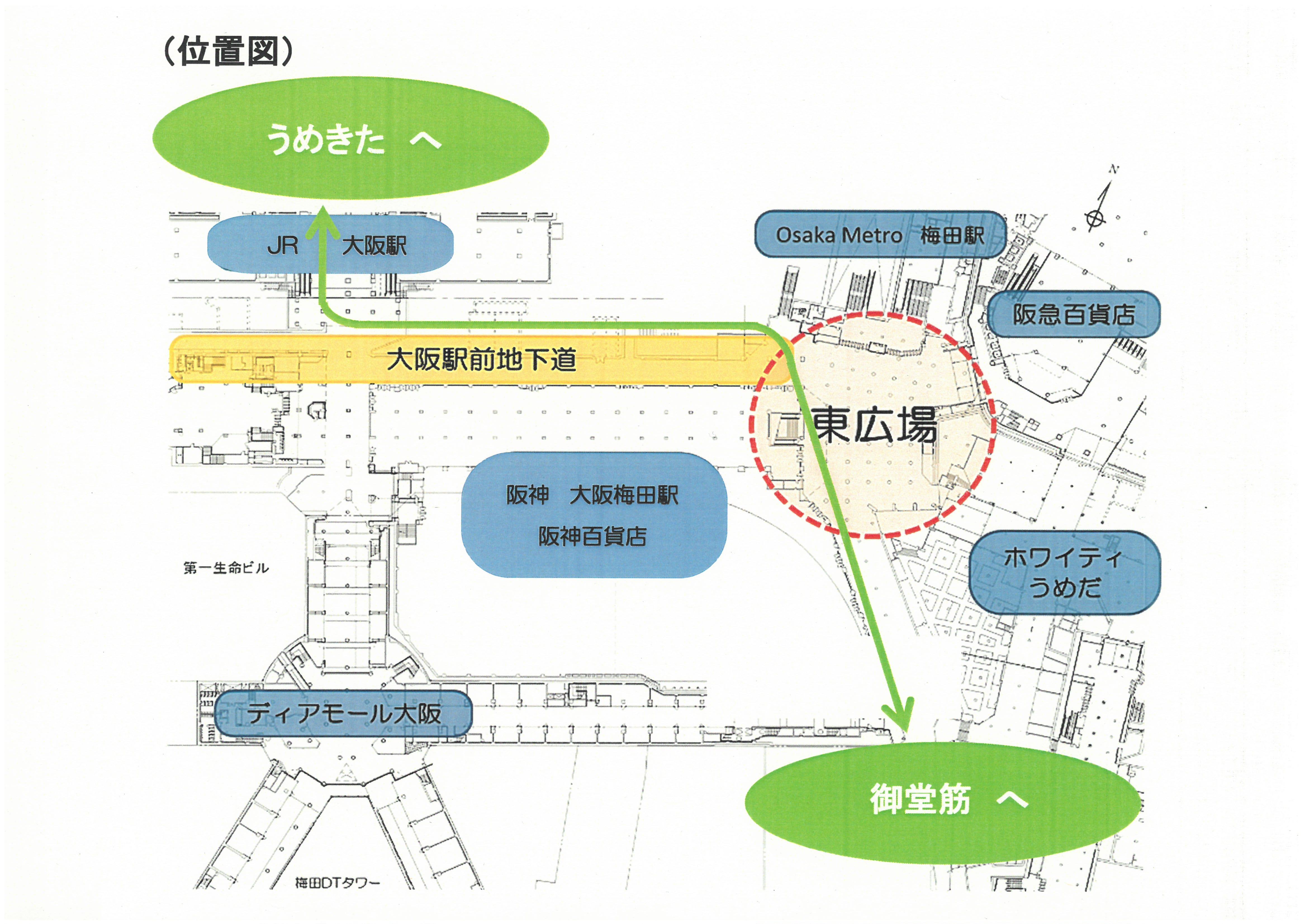 東広場リニューアル工事のお知らせ(R4.3)~地下鉄梅田駅南改札前の工事について~(PDF形式, 701.78KB)
