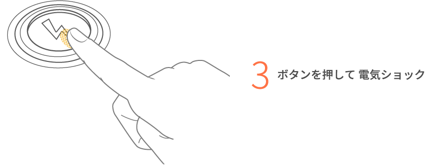 - 電気ショックが必要かどうかは、AEDが判断します。電気ショックが必要ない場合は、ボタンを押しても電気は流れません。