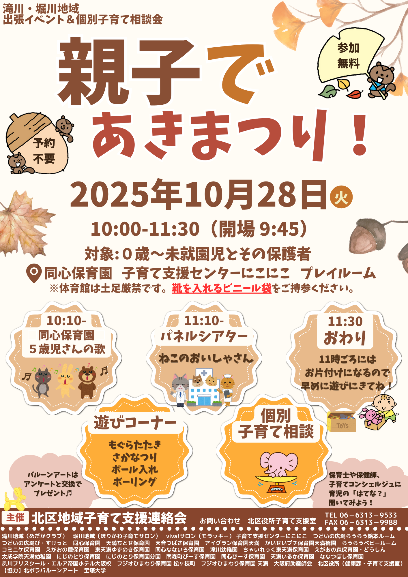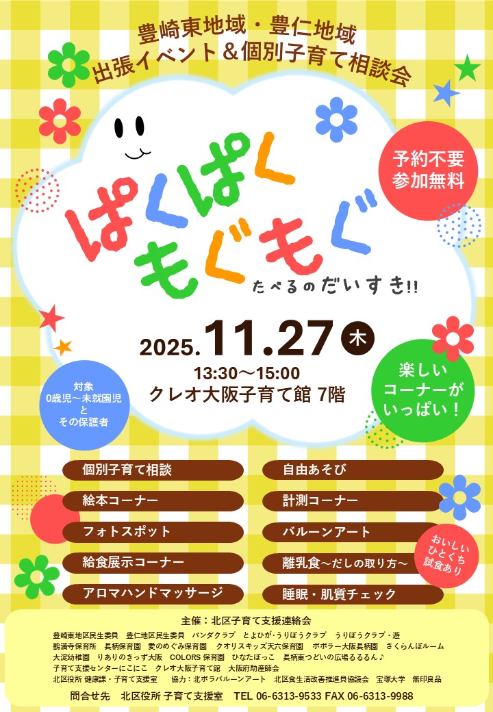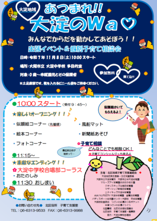 問合せ:北区役所子育て支援室 電話:06-6313-9533 FAX:06-6313-9988