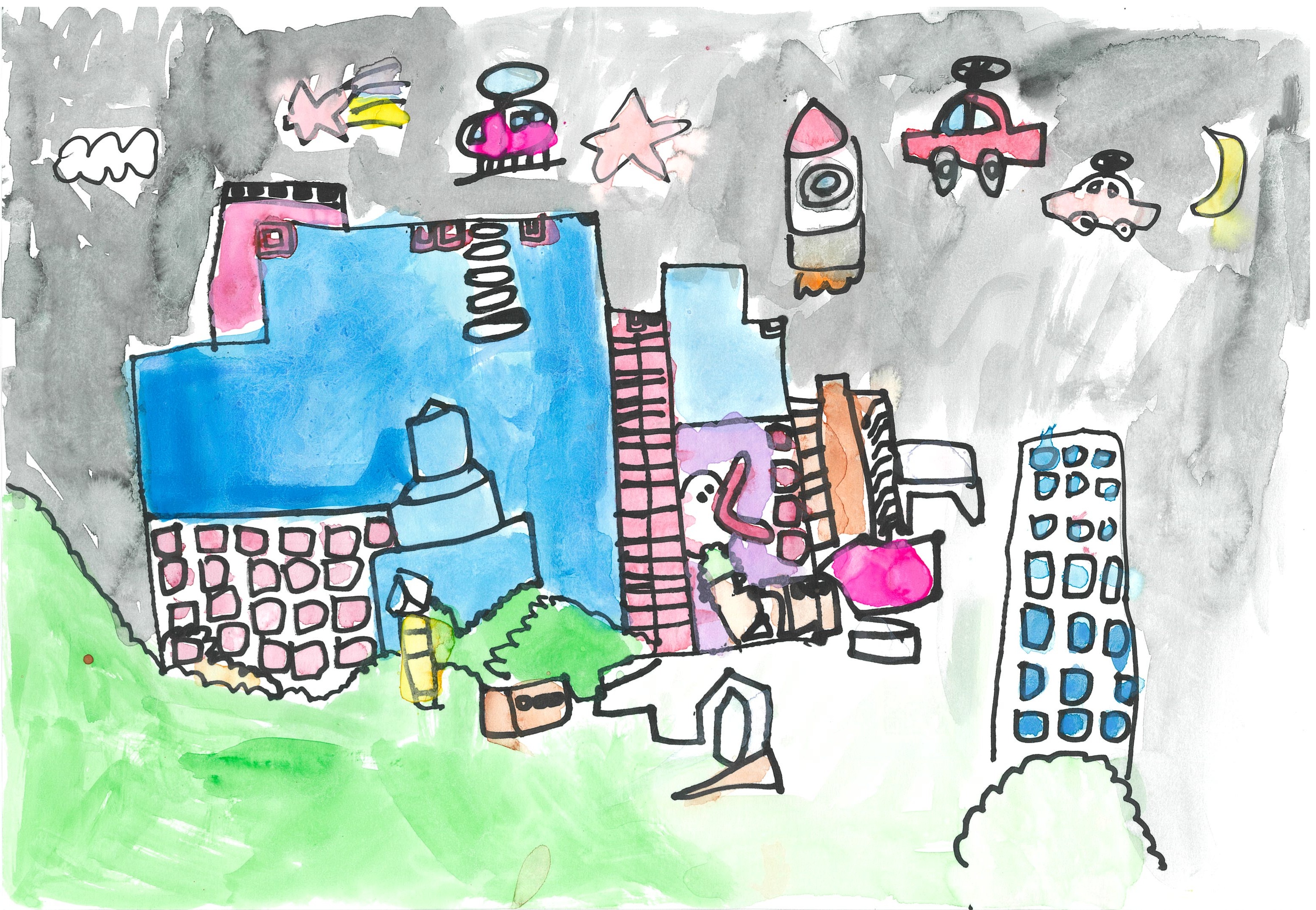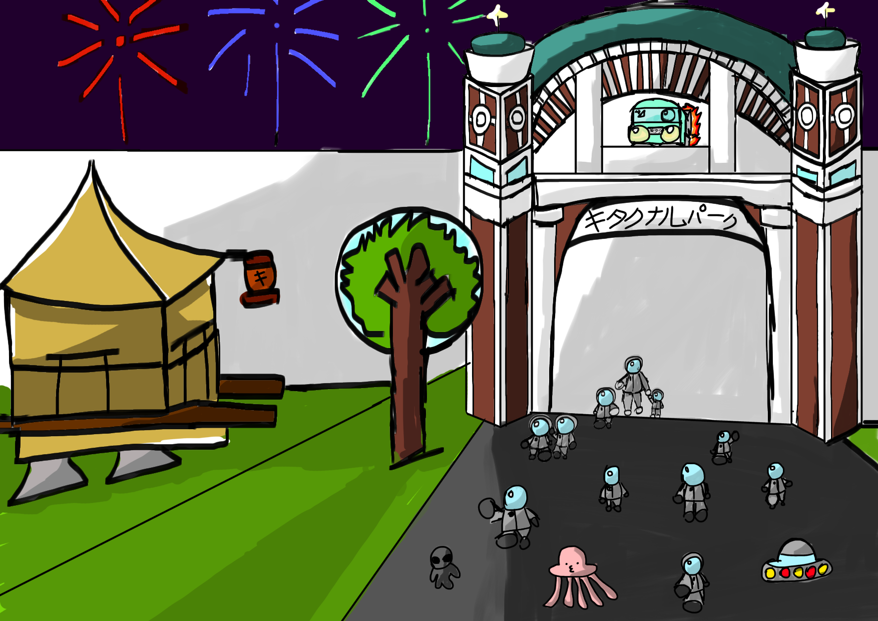 作品PR:誰もがキタクなるイメージし、宇宙人も一緒に楽しむ未来の北区を想像して描きました。