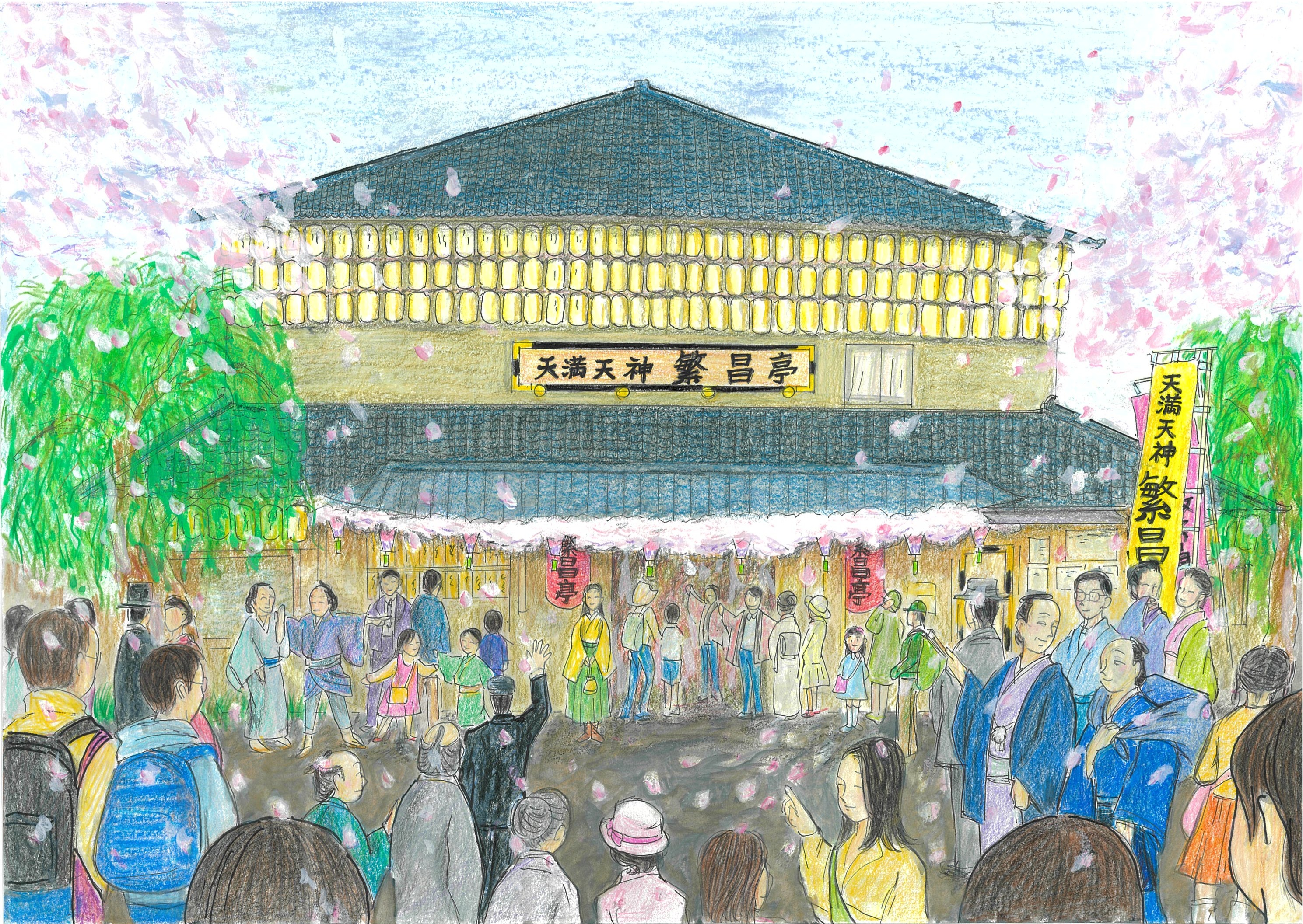 天神祭と中之島公会堂をモチーフにしたキタクナルパークへ楽しんでいるシチュエーションです。