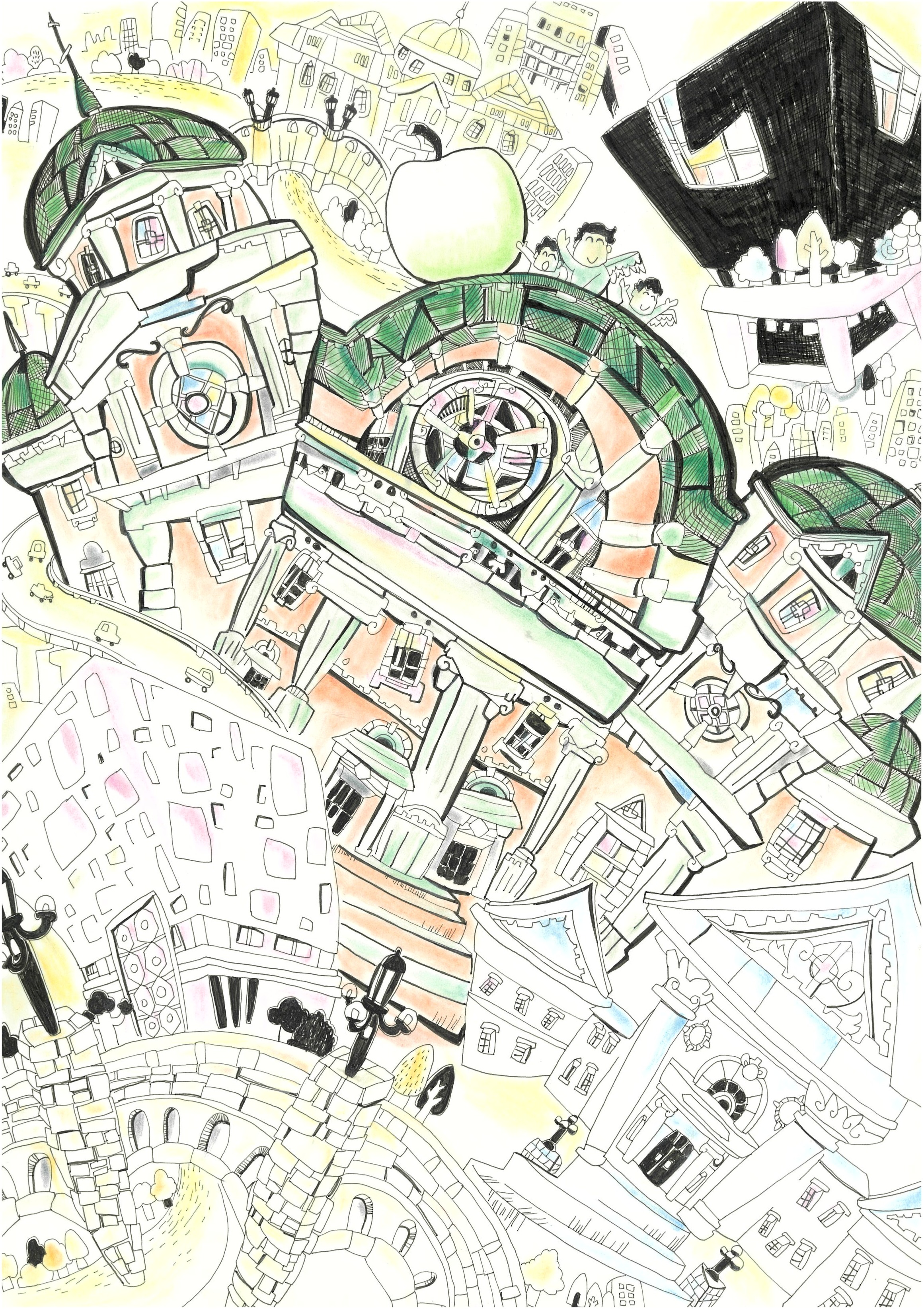 作品PR:宇宙船が着陸できる中央公会堂になればいいなと思って描いた