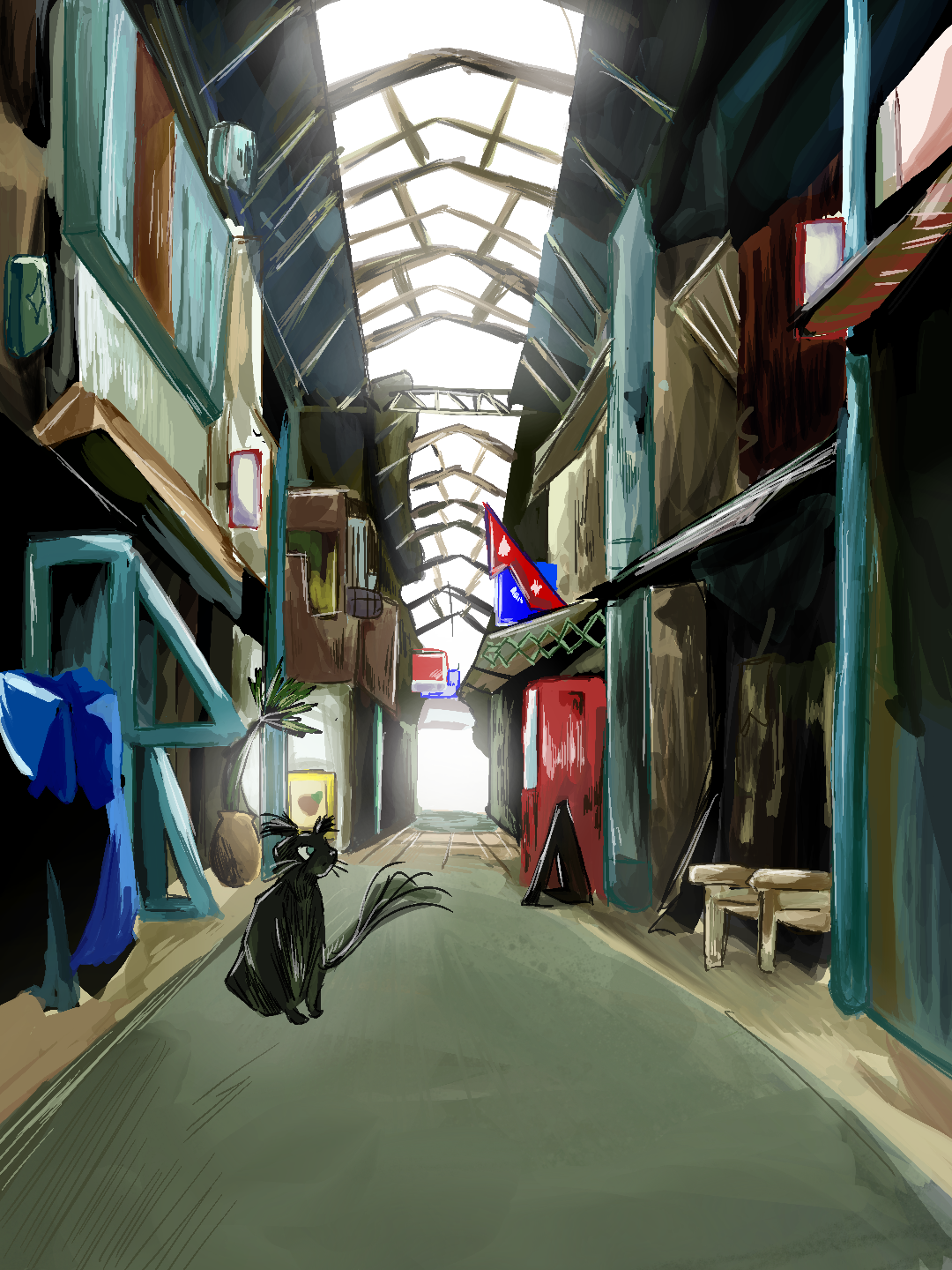 作品PR:中津商店街を描きました。昭和の頃はとてもにぎやかだったと聞いて、当時のにぎやかなイメージを表すように鮮やかな色使いを意識しつつ、どこか寂しさもある街並みを表現しました。イラスト中央に配置した猫のような存在は単なる猫ではなく、中津の独自性と私自身を重ねた存在です。昔のままの雰囲気や面影と今の変化の中に立つ気持ちを込め、「令和の昭和」とタイトルをつけました。