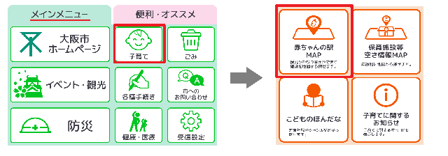 3. メインメニュー > 子育て > 赤ちゃんの駅マップ