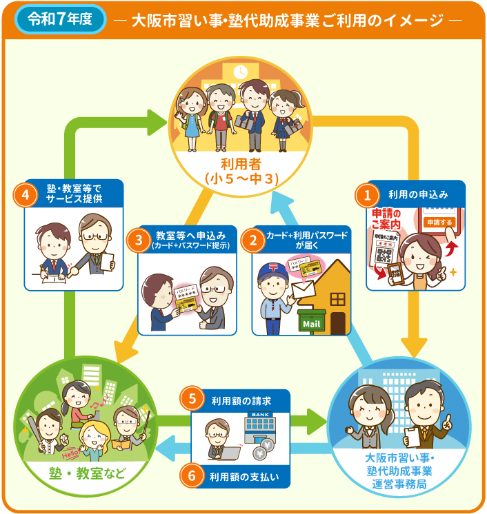 大阪市習い事・塾代助成事業参画事業者として登録されている学習塾や家庭教師、文化・スポーツ教室などです(オンライン学習塾などを含みます)。利用可能な学習塾などは、教室等検索や教室マップをご確認ください。