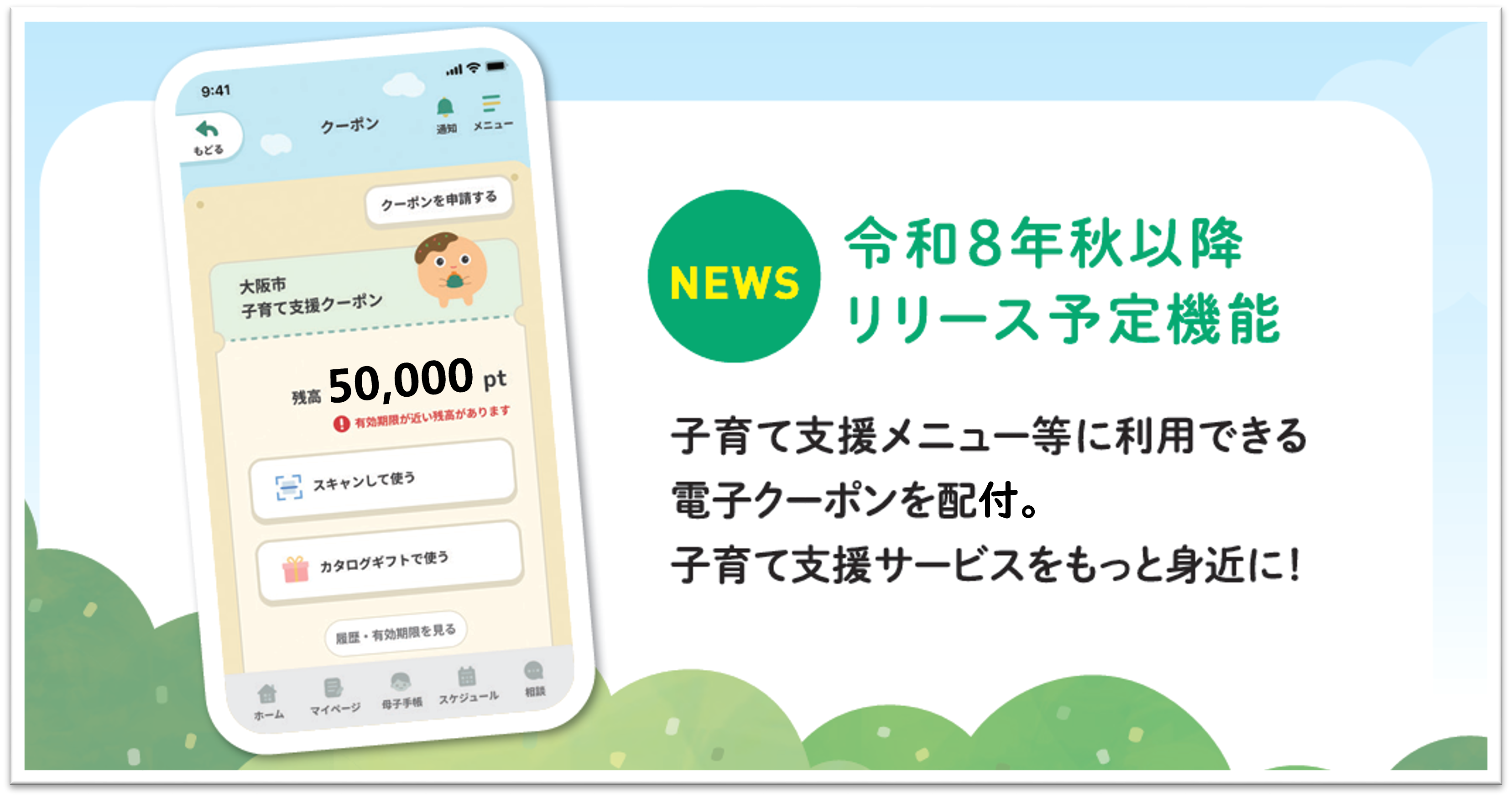 子育て支援メニュー等に利用できる電子クーポンを令和8年秋以降配付する予定です
