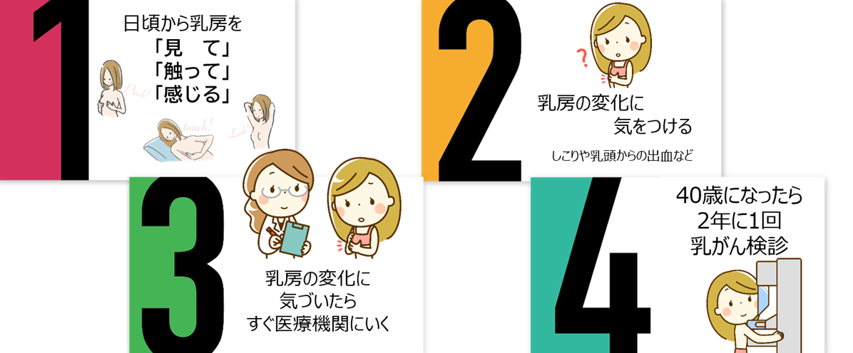 自分の乳房の状態に日頃から関心を持ち、乳房を意識して生活することを「ブレスト・アウェアネス」といいます
