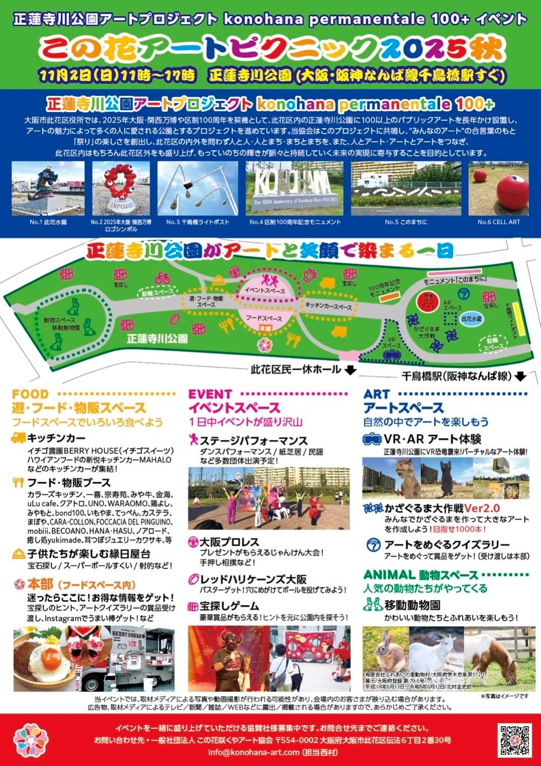 大阪市此花区役所では、2025年大阪・関西万博や区制100周年を契機として、正蓮寺川公園に相応しい100以上のパブリックアートを長年かけ設置し、アートの魅力によって多くの人に愛される公園とする取組である「正蓮寺川公園アートプロジェクトkonohana permanentale 100+(コノハナペルマネンターレ ヒャクプラス)」を進めています。