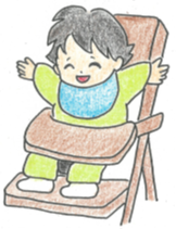 おすわりが安定したら、ベビーチェアや子ども用の椅子に座らせて食べていきましょう。