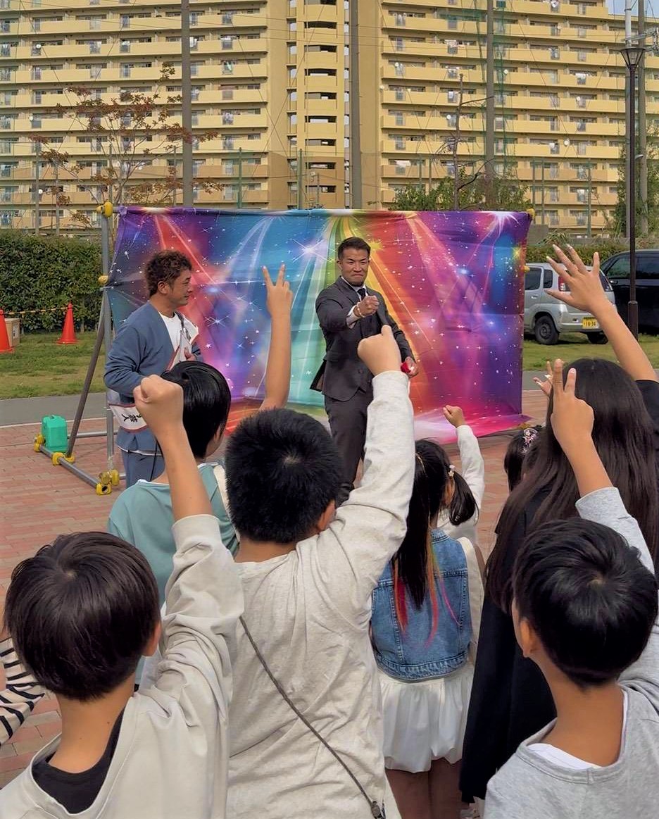 また、このイベントを通じて、本連携協定をより広く区⺠の皆様等に知っていただくとともに、本連携協定に基づく連携した取組の第1弾として、 ⼤阪プロレス株式会社による盛り上げイベントを⾏いました。
