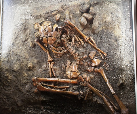 出土人骨の大半は解剖学的調査のため、各部位ごとに取り上げられているが、第4次調査2号人骨の埋葬土壙墓(どこうぼ)だけは展示資料として当時の埋葬状態のままで切り取り保存されている。また、装身具として加工された第4次調査8号人骨は、縄文・弥生時代の死生観の一端を示すものといえる。人骨製装身具が完全な状態で残されているのは、全国的に見ても希少性が高い。