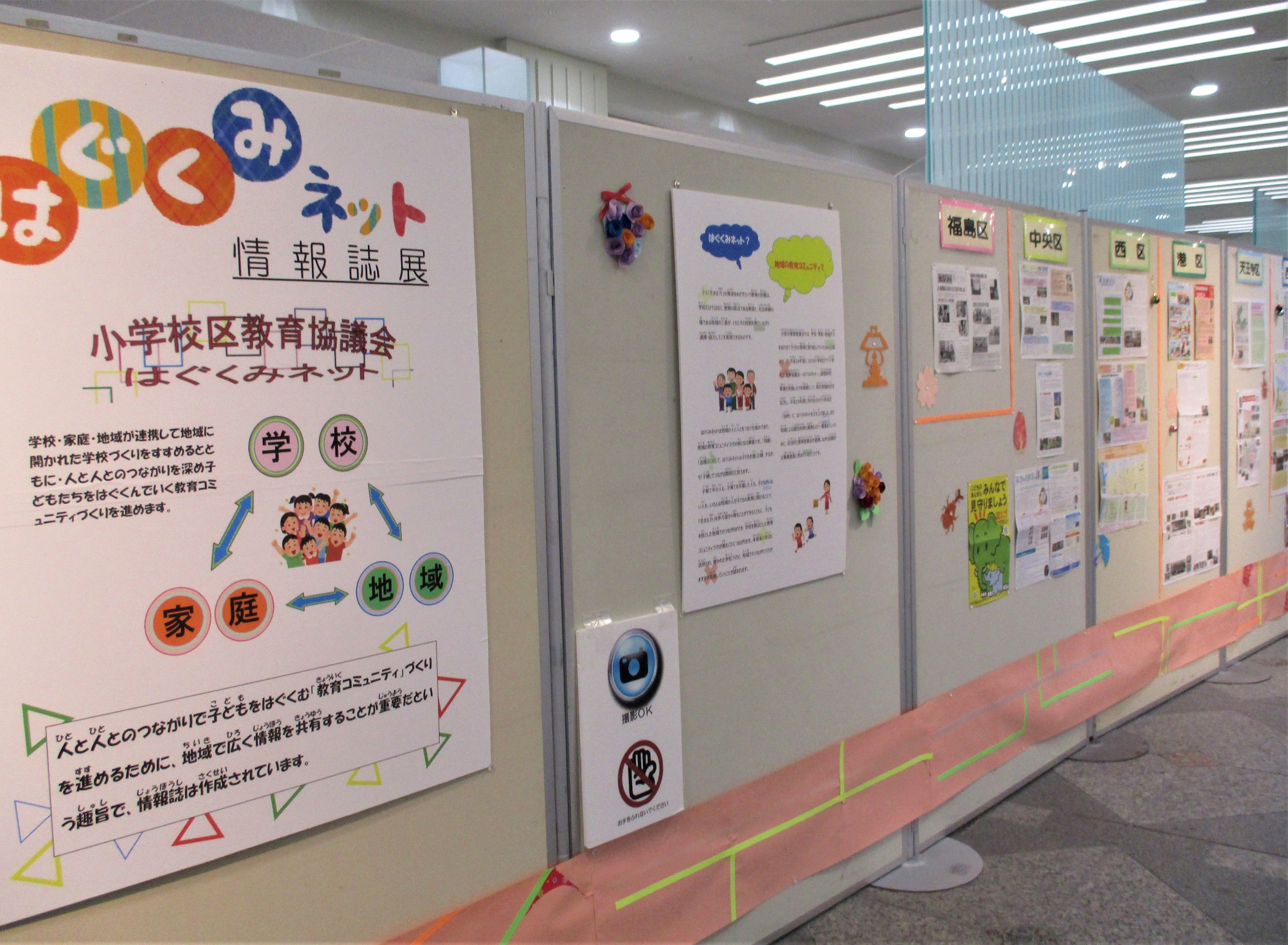 「小学校区教育協議会―はぐくみネット―」は、大阪市内各小学校区で、学校・家庭・地域が連携して地域に開かれた学校づくりを進めるとともに、人と人とのつながりを深め、子どもたちをはぐくんでいく「教育コミュニティ」づくりを進めています。多くの「はぐくみネット」では地域と学校・保護者をつなぐ情報誌を発行しており、昨年11月から今年11月にかけて発行された情報誌の展示を行います。各校区の工夫を凝らした情報誌を、ぜひご覧ください。