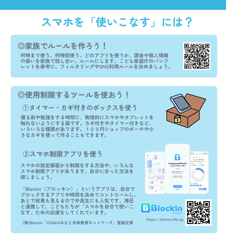 「スマホ制限ツール&トラブル相談窓口」チラシ
