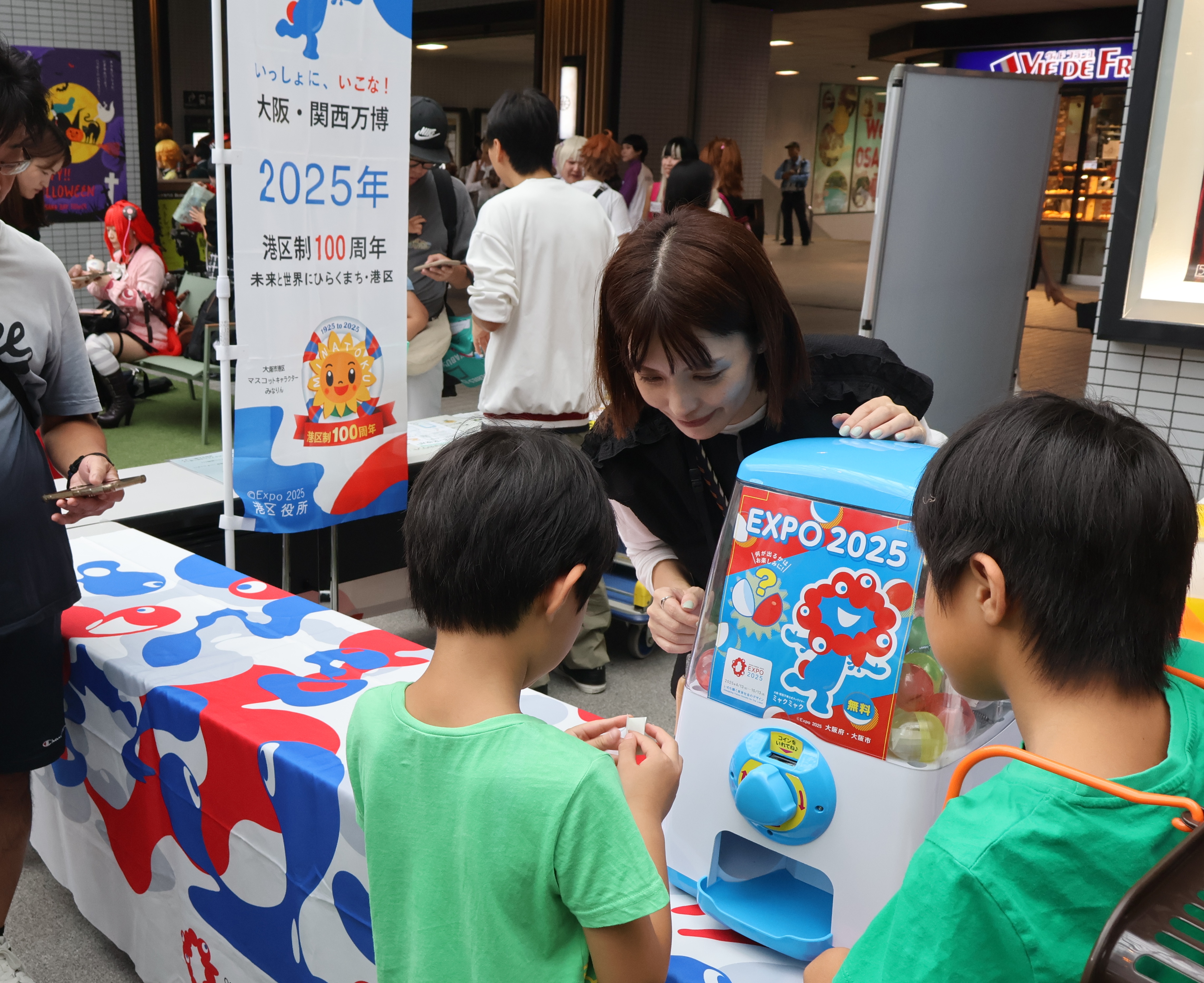 区役所ブースでは、港区制100周年と万博をPR。大阪市公式LINE友だち登録キャンペーンも実施