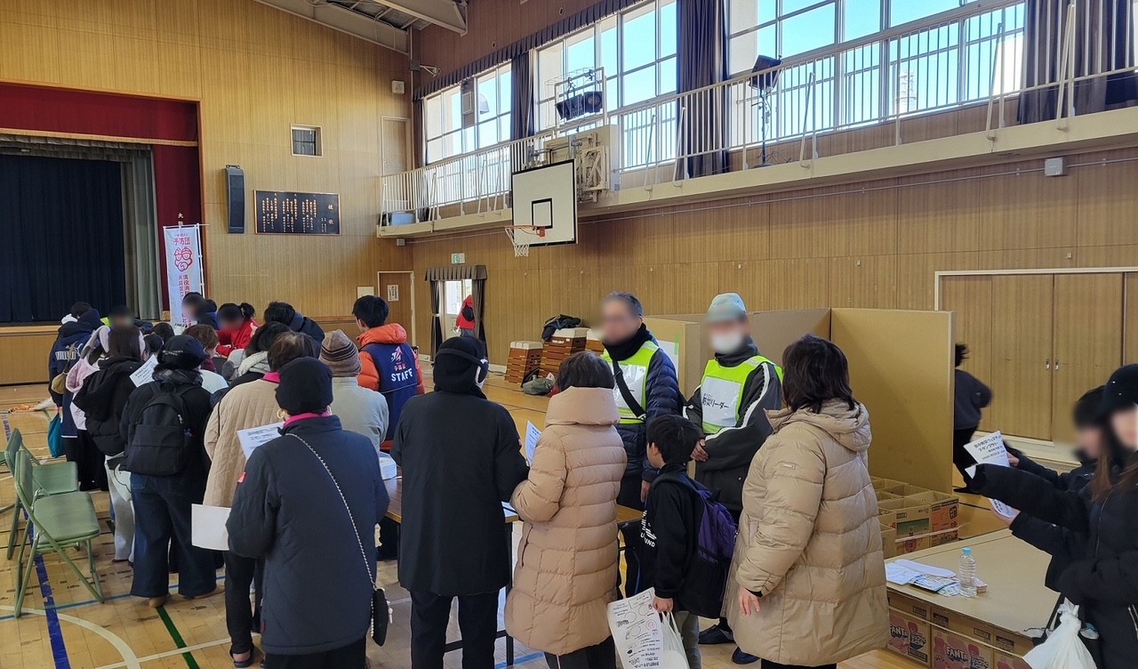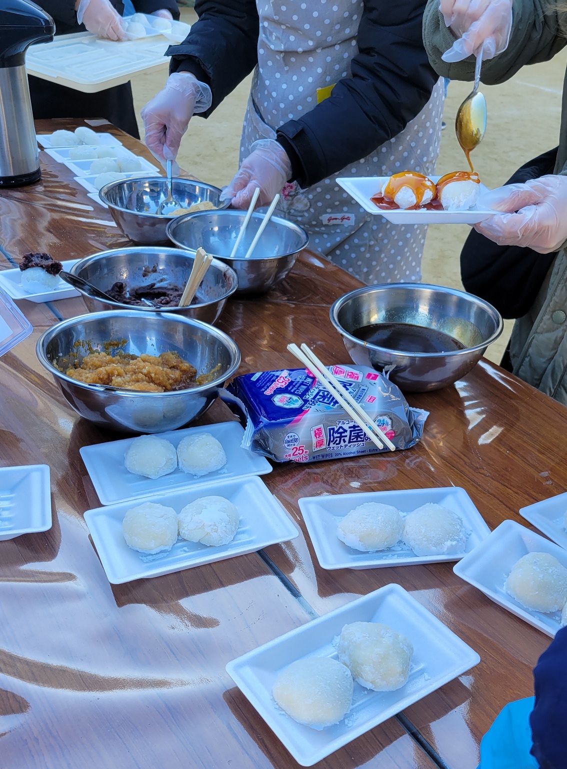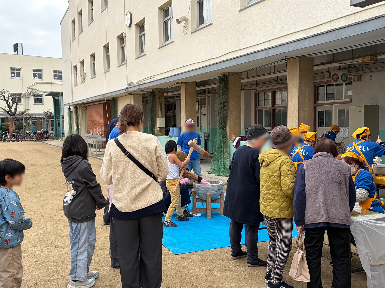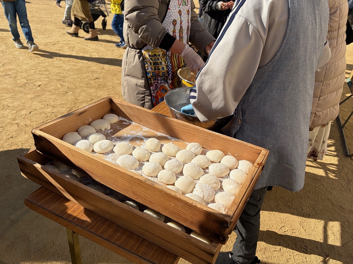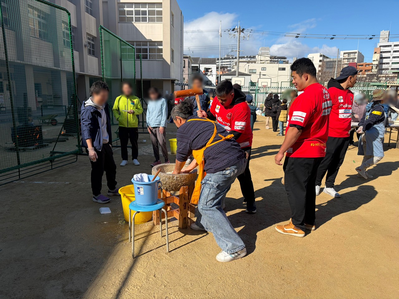 三先地域活動協議会では「もちつき大会」が開催されました。温かい豚汁におでん、おもちは砂糖醤油、きなこ、おろしにバター醬油などたくさんの味を楽しめました!もちつきにはレッドハリケーンズ大阪の皆様の協力もあり地域の方もとても喜んでいる様子でした♪