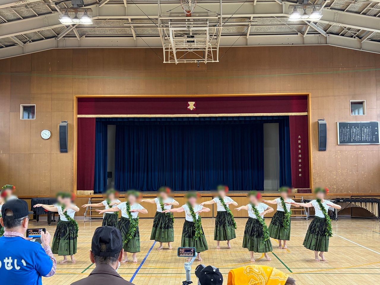 港晴地域活動協議会主催の「盆おどり大会」が港晴小学校にて開催されました。当日は暑い中でしたが、河内音頭などのおなじみの曲や万博音頭などを踊りながら、みんなで夏の楽しいひと時を過ごしていました。