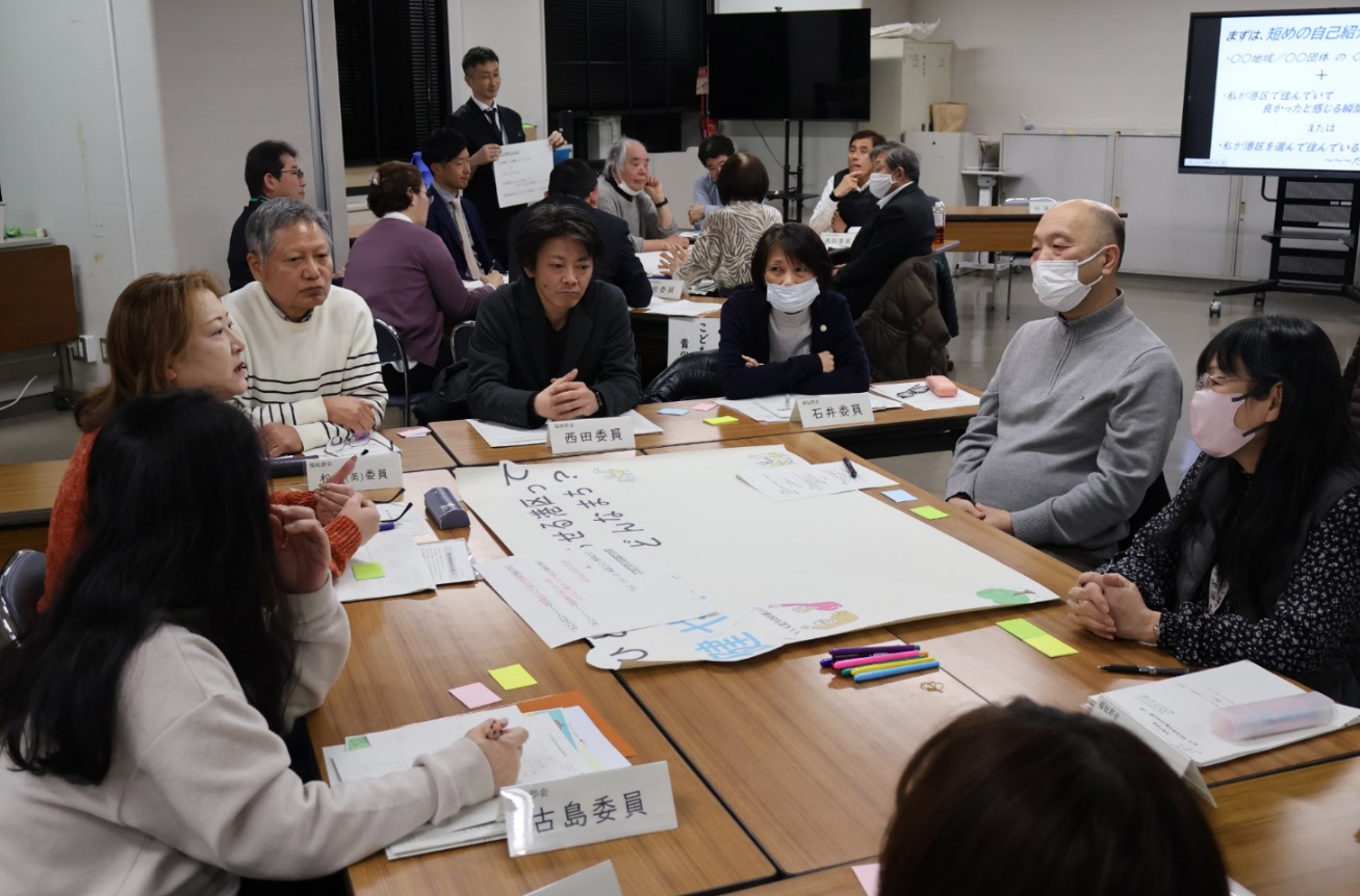港区では、来年度、現行のまちづくりビジョンの更新時期を迎えることから将来ビジョンの設計に反映させるため、「5年後港区がどんなまちになってほしいか」というテーマに基づき、区政会議の委員の皆さんに意見交換を行っていただきました。