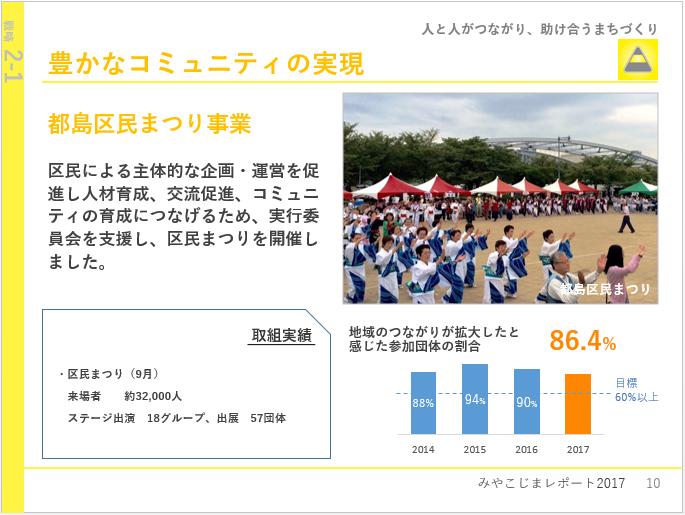 区民の皆さまから、区政運営についてご意見や評価をいただくため、区役所が平成29年度1年間で取り組んだ主な事業をとりまとめました。