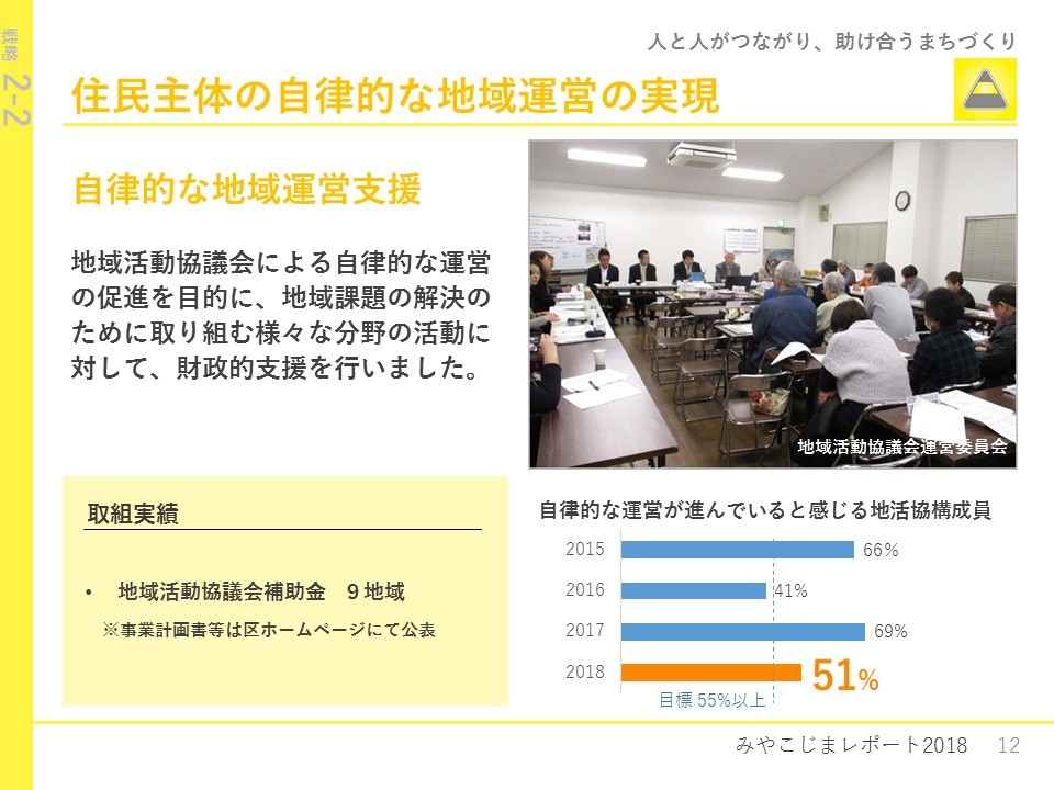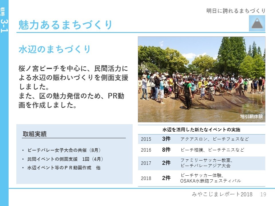 区民の皆さまから、区政運営についてご意見や評価をいただくため、区役所が平成30年度1年間で取り組んだ主な事業をとりまとめました。