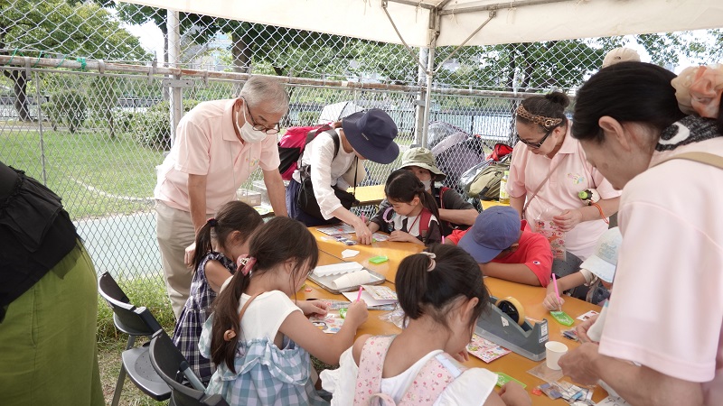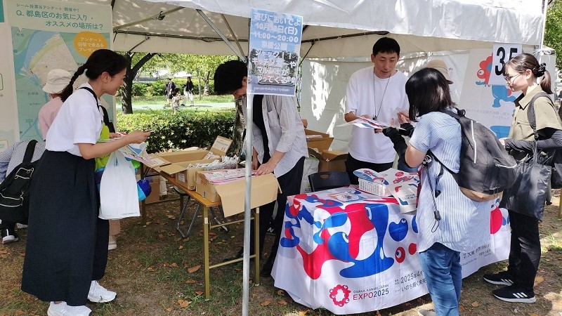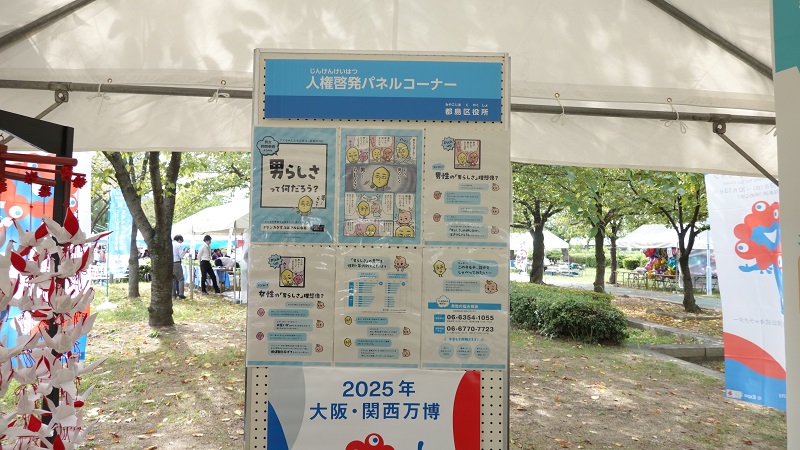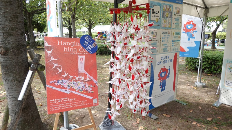 その他、「みやこじま未来EXPO」特別ブースでは、大阪・関西万博~大阪ウィーク~の熱気再び!と題して、区民まつりを都島区の伝統であるだんじり囃子にて「都島区だんじり協議会」が盛り上げるとともに、昨年の区民まつりで実施したウィッシュリボンを入れたつるし飾り(千羽鶴)が大阪・関西万博に出展したため、その一部の展示を行いました。あわせて、SDGsや人権啓発の展示のほか、都島のまちのことアンケートと題し、都島区のオススメの場所を参加者にお聞きしました。
