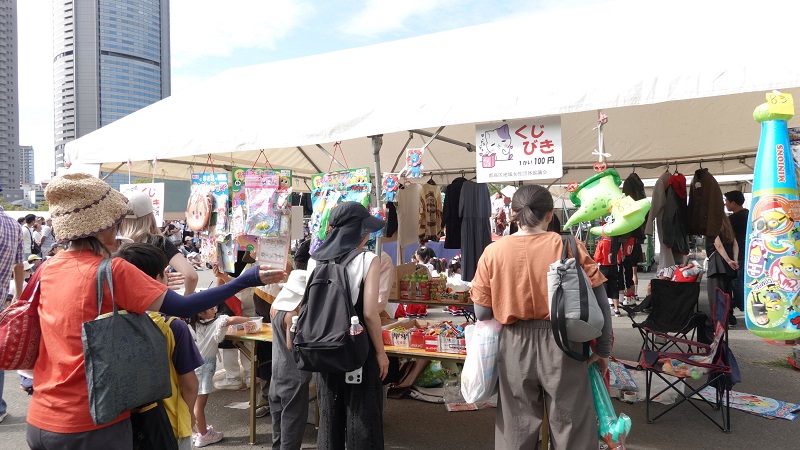 また、模擬店では、各地域団体等による様々なブースが出展され、地域活動協議会などの飲食ブース、例年大行列の都島区商店会連盟による抽選会、防災意識の向上を図る都島消防署起震車による地震の揺れ体験など、どのブースも大人気で賑わい、こどもから大人まであらゆる世代の方々が楽しんでいただきました。