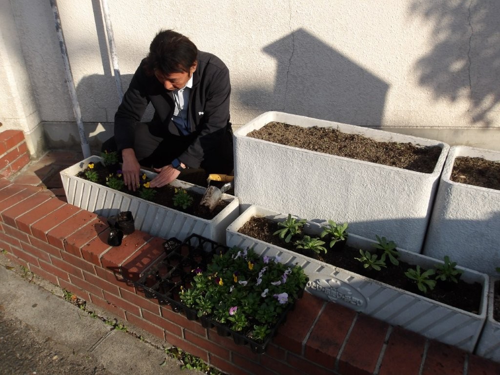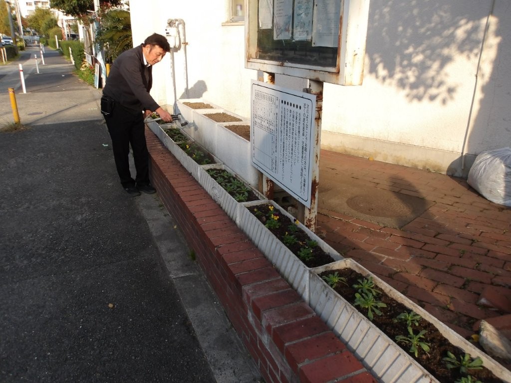 淀川福祉会館前の花壇に、季節の花を植え替えました。色とりどりの花が並ぶと、会館もぐっと明るくなります。また、地域の皆さんが足を止めて「花を見て元気になる」と、交流する機会が増え、コミュニティが広がっているように感じます。花でまちを美しく飾ることで、人々のつながりが生まれ、犯罪が起こりにくい安全な環境になることを願っています。(淀川地域活動協議会 馬場重信さん談)