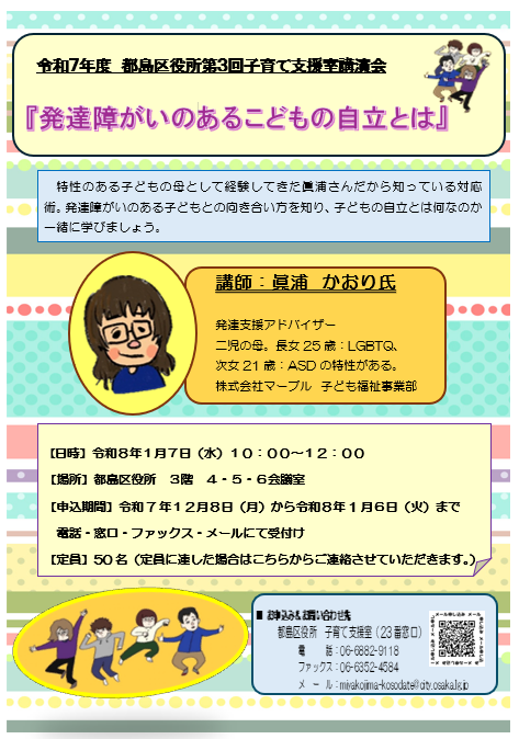 令和7年度 第3回都島区役所子育て支援室講演会 【12月8日より申し込み受付】