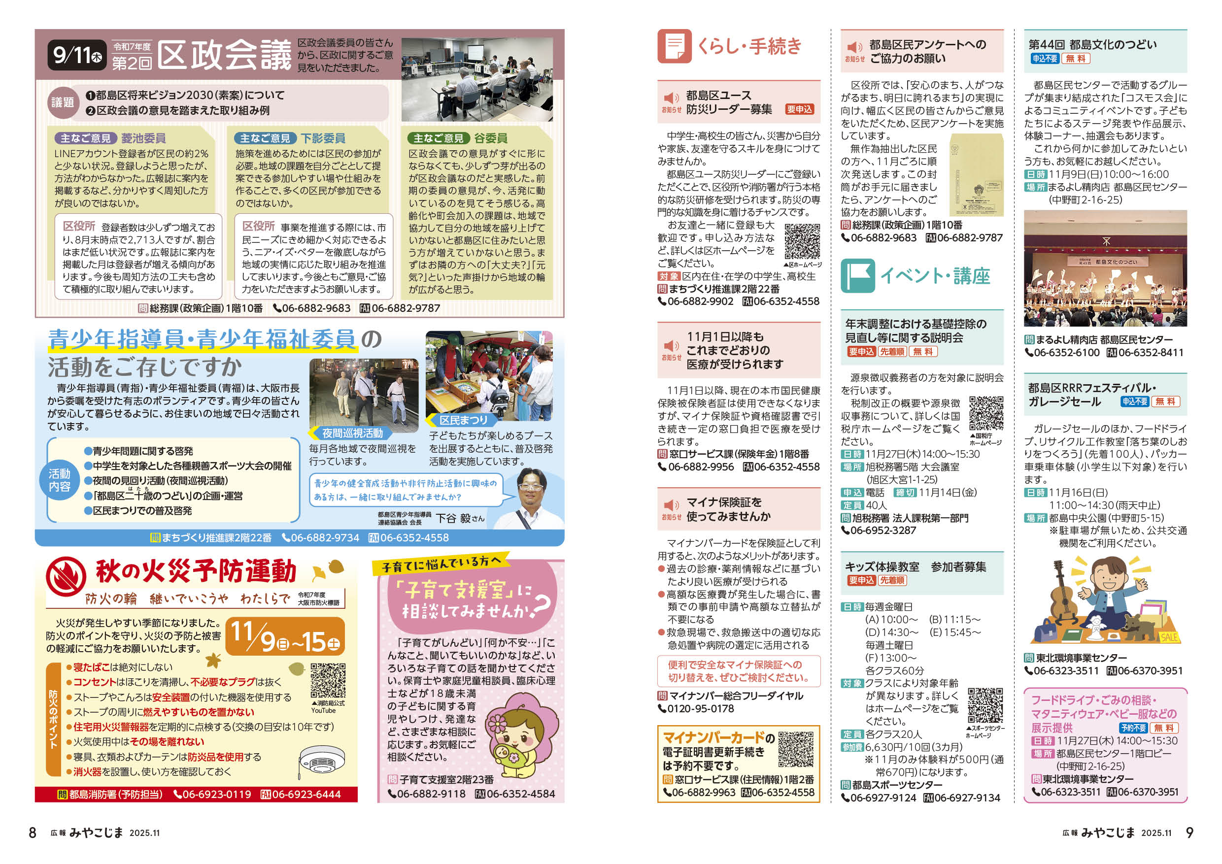 8ページ 令和7年度第2回区政会議、青少年指導員・青少年福祉委員の活動をご存じですか、秋の火災予防運動、「子育て支援室」に相談してみませんか?(MP3形式, 5.85MB)