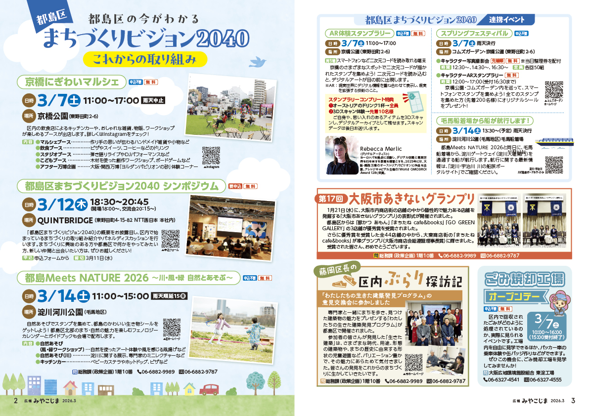 3ページ 都島区まちづくりビジョン2040連携イベント、第17回大阪市あきないグランプリ、藤岡区長の区内ぶらり探訪記、ごみ焼却工場オープンデー(MP3形式, 2.68MB)