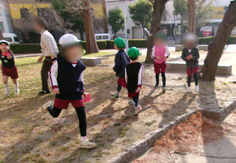 園長:公園に走りに行ったり、秋には落ち葉拾いをしたりするなど、保育に活用しています。また、毎日降園後に公園で遊ぶ園児も多く、体力や運動能力の向上にもつながっていると感じています。