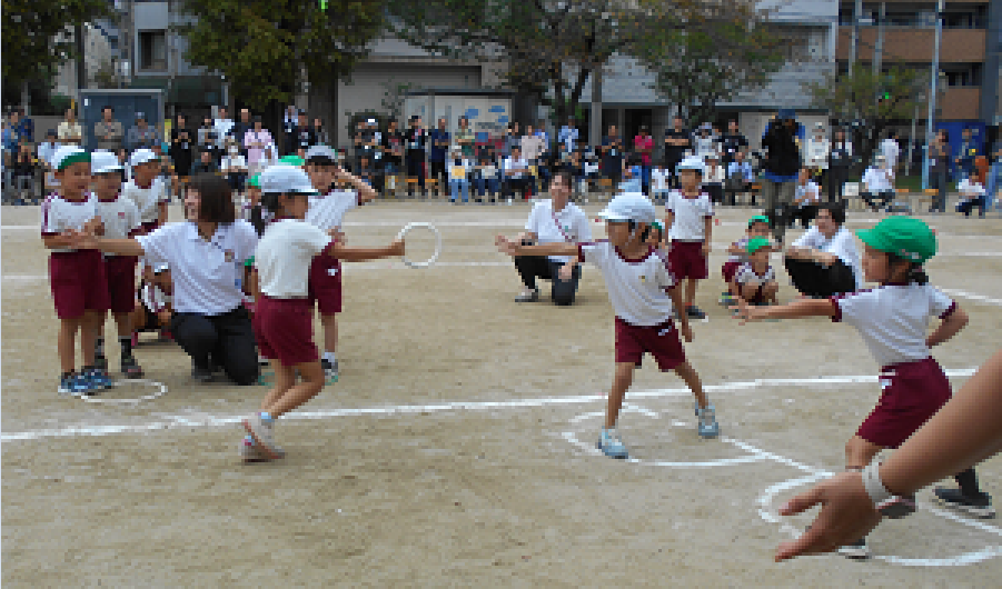 園長:はい。園児が歌や楽器、手遊びを披露したり、一緒に体操やふれあい遊びをしたり、運動会の競技を行ったりします。未就園児と関わる中で、優しい気持ちが育まれていきます。