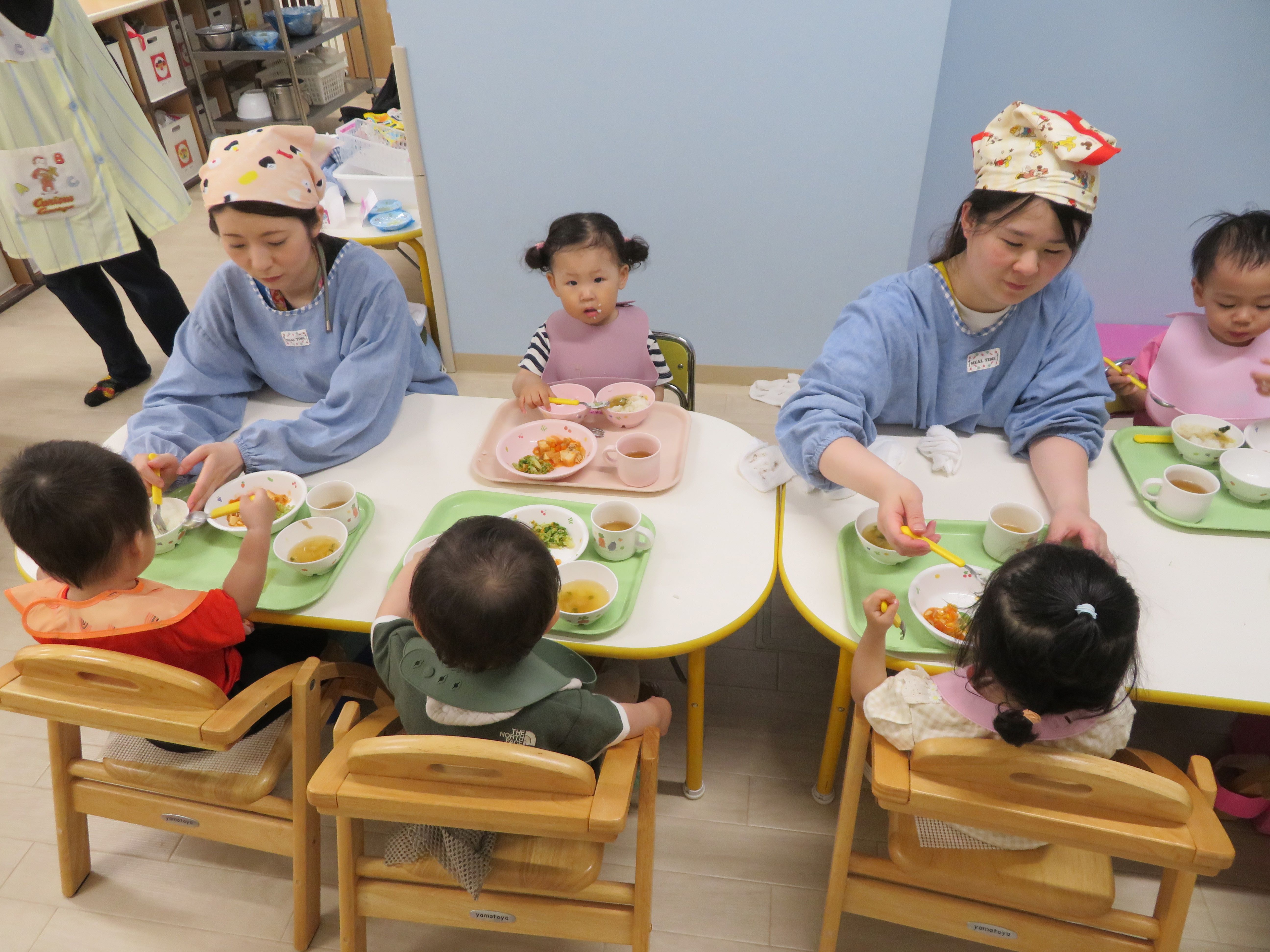 一人一人の子どもを丁寧に受け止め、情緒の安定をはかり心身共に心地よく生活を送られるよう目標を持って保育することを心がけています。月齢や季節に応じて、散歩・戸外あそびを楽しんでいます。毎月の食育活動では旬の食材に触れ、食への興味に繋げます。また、連携保育園には、西六保育園・桜川保育園があり遊びの交流や3歳児クラスに受け入れをして頂きます。