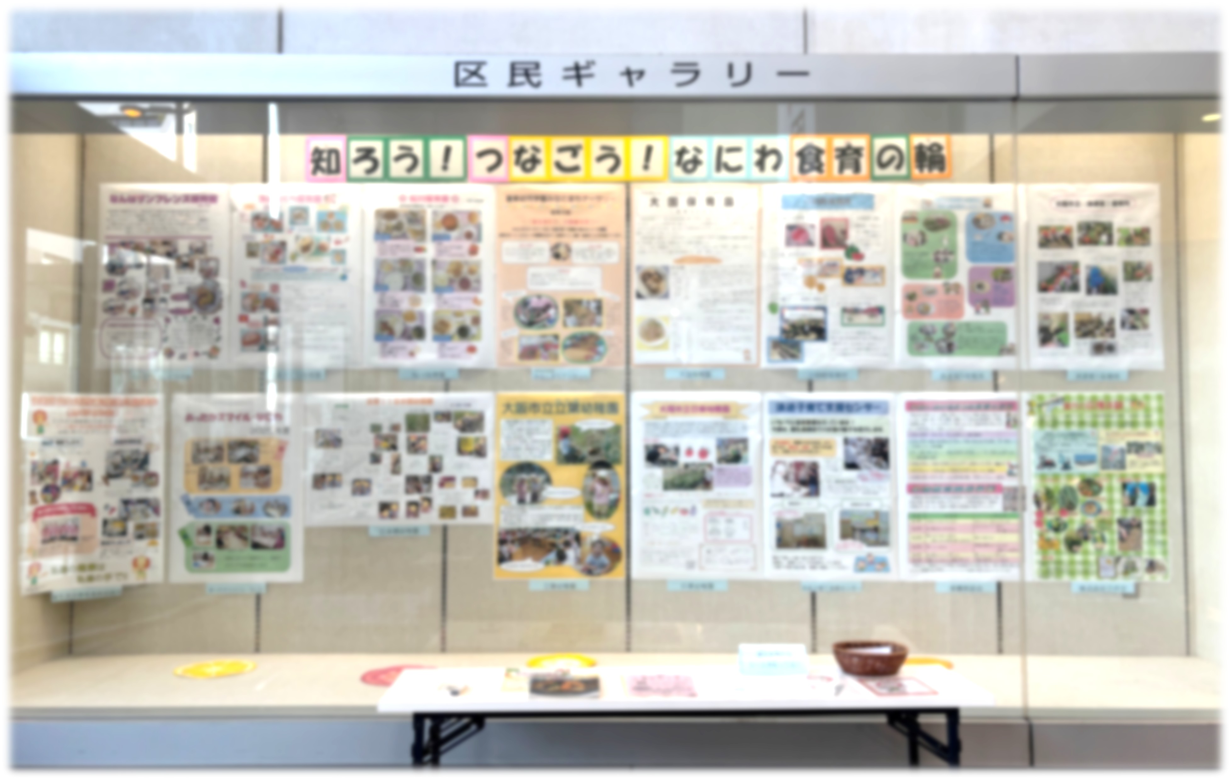 食育ポスター展では、浪速区で行われている食育についてポスターで紹介しています。区役所にお越しの際はぜひご覧ください。
