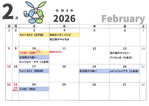 子育てカレンダー(2月の子育て関連講座・イベント一覧)をお知らせします