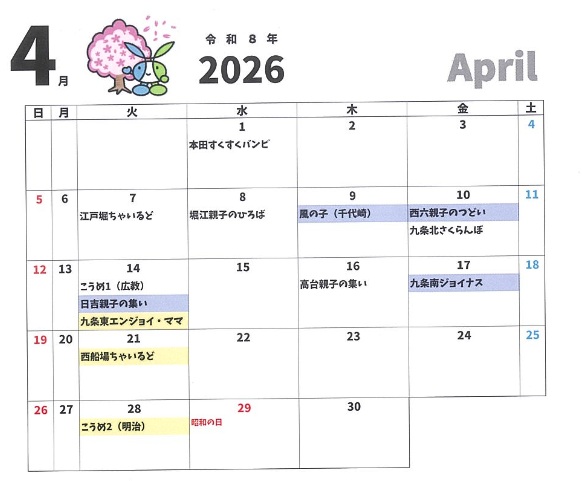 子育てカレンダー(4月の子育て関連講座・イベント一覧)をお知らせします