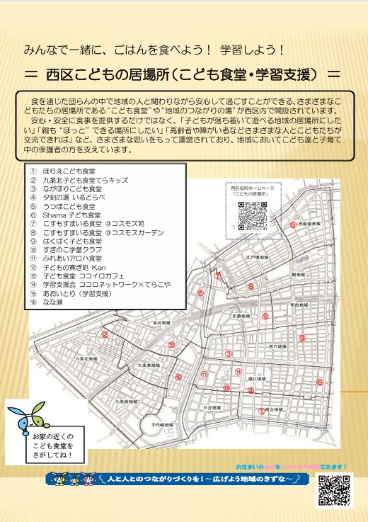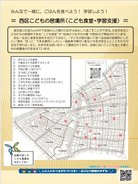 また、西区役所では、こども食堂をはじめとする「こどもの居場所」の設置をめざした担い手を今後募集してまいります。