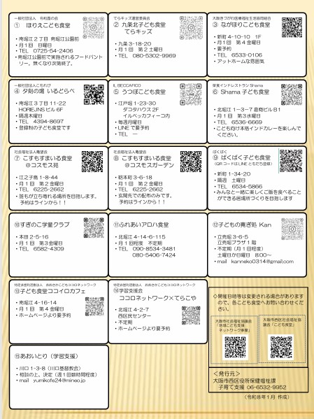 情報が更新されている場合があります。詳細は、各こども食堂等にご確認ください。