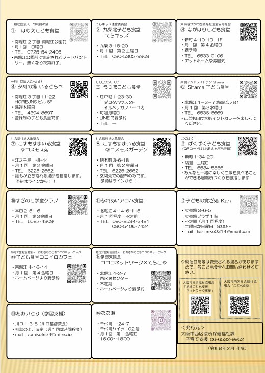 13 | 子ども食堂 ココイロカフェ | 南堀江4-16-14 | ホームページ | 月1回 第4金曜日 |