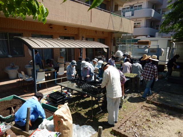 「花づくり広場」では、種まきから始まって、水やりや移植など花苗の育成を行います。育った花苗は、区内各所の花壇やプランターなどに出荷します。