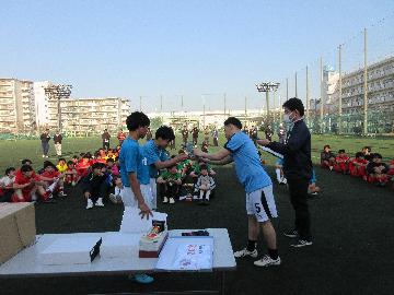 株式会社セレッソ大阪さまから前大会優勝カップレプリカ及び最優秀・優秀選手賞としてメダルが贈られ、有限会社サクセスフーズ(日本マクドナルド株式会社フランチャイジー)さまから参加賞並びに最優秀キーパー賞としてトロフィーが贈られました。