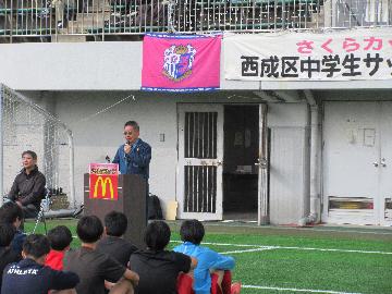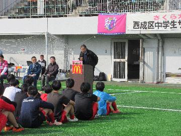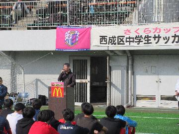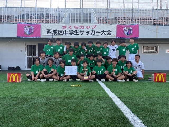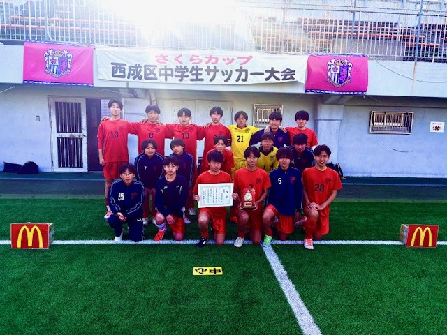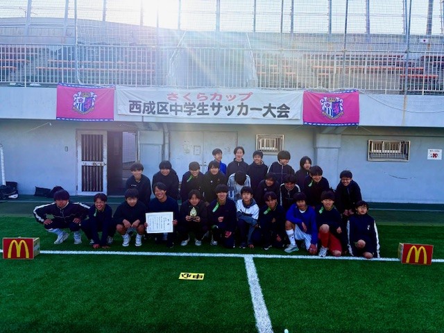 令和8年3月20日(金曜日・祝日)に、第20回西成区小学生サッカー大会「さくらカップ」を開催し、5チーム、約125人の中学生たちが熱戦を繰り広げました。