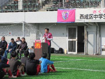 第24回西成区小学生サッカー大会「さくらカップ」を開催し、5チーム、約90人の小学生たちが熱戦を繰り広げました。