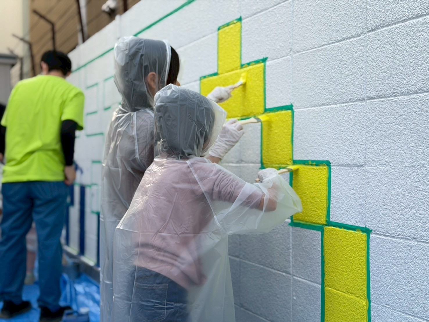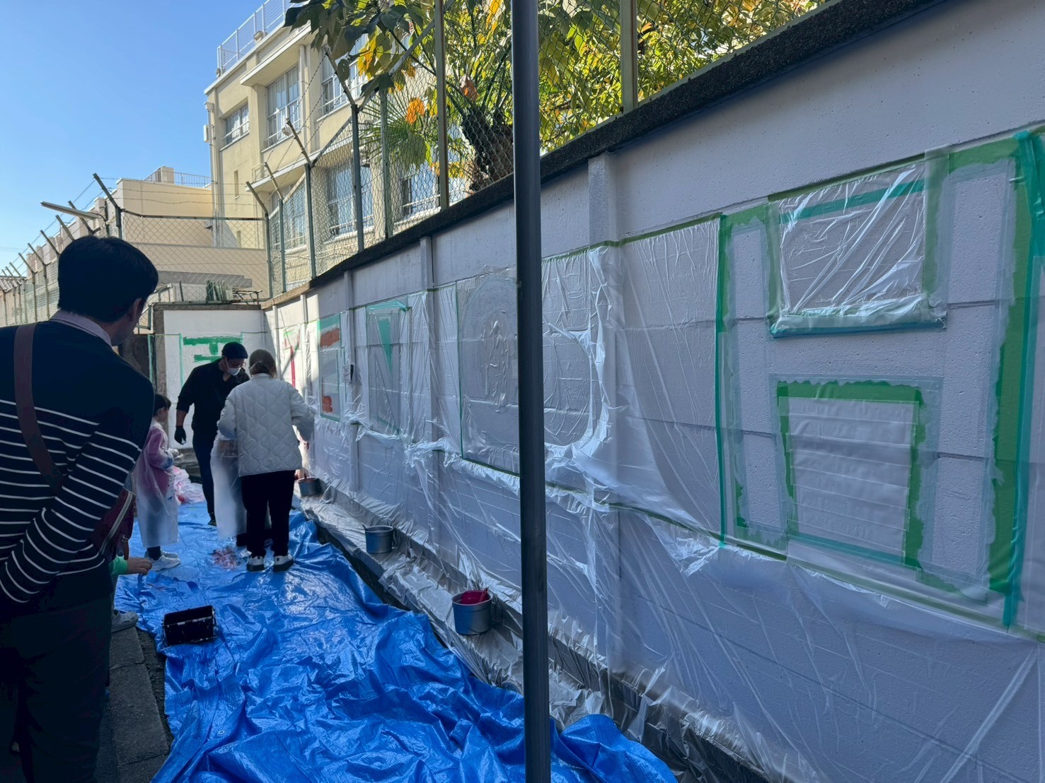 ・天下茶屋小学校…グラウンドではこどもあそび、体育館では音楽体験とアンサンブルコンサート(※音楽体験、アンサンブルコンサートは11月23日(日)のみ)、学校周りのブロック塀ではペンキ塗り体験を実施。