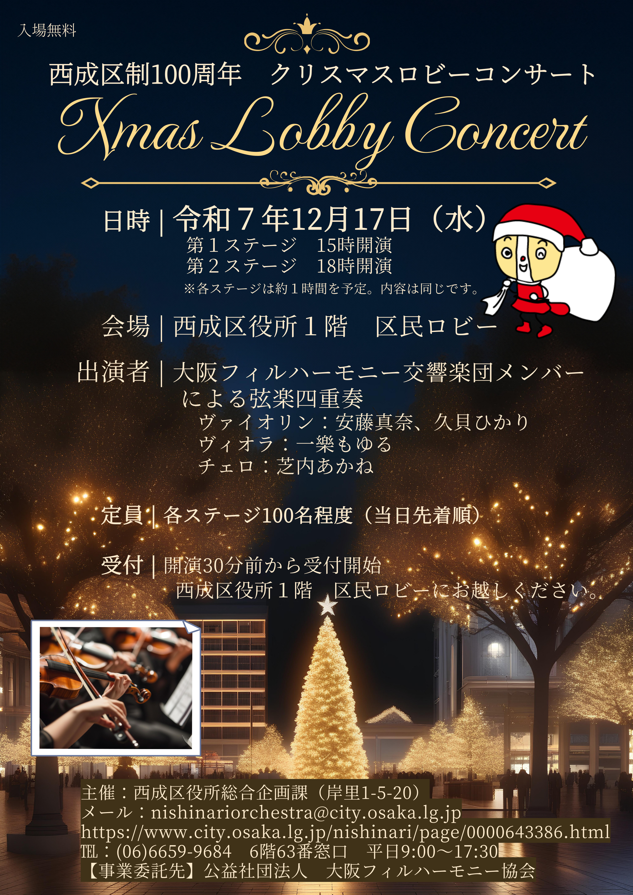 【開催報告】西成区制100周年大阪フィルハーモニー交響楽団演奏によるクリスマスロビーコンサートを開催しました