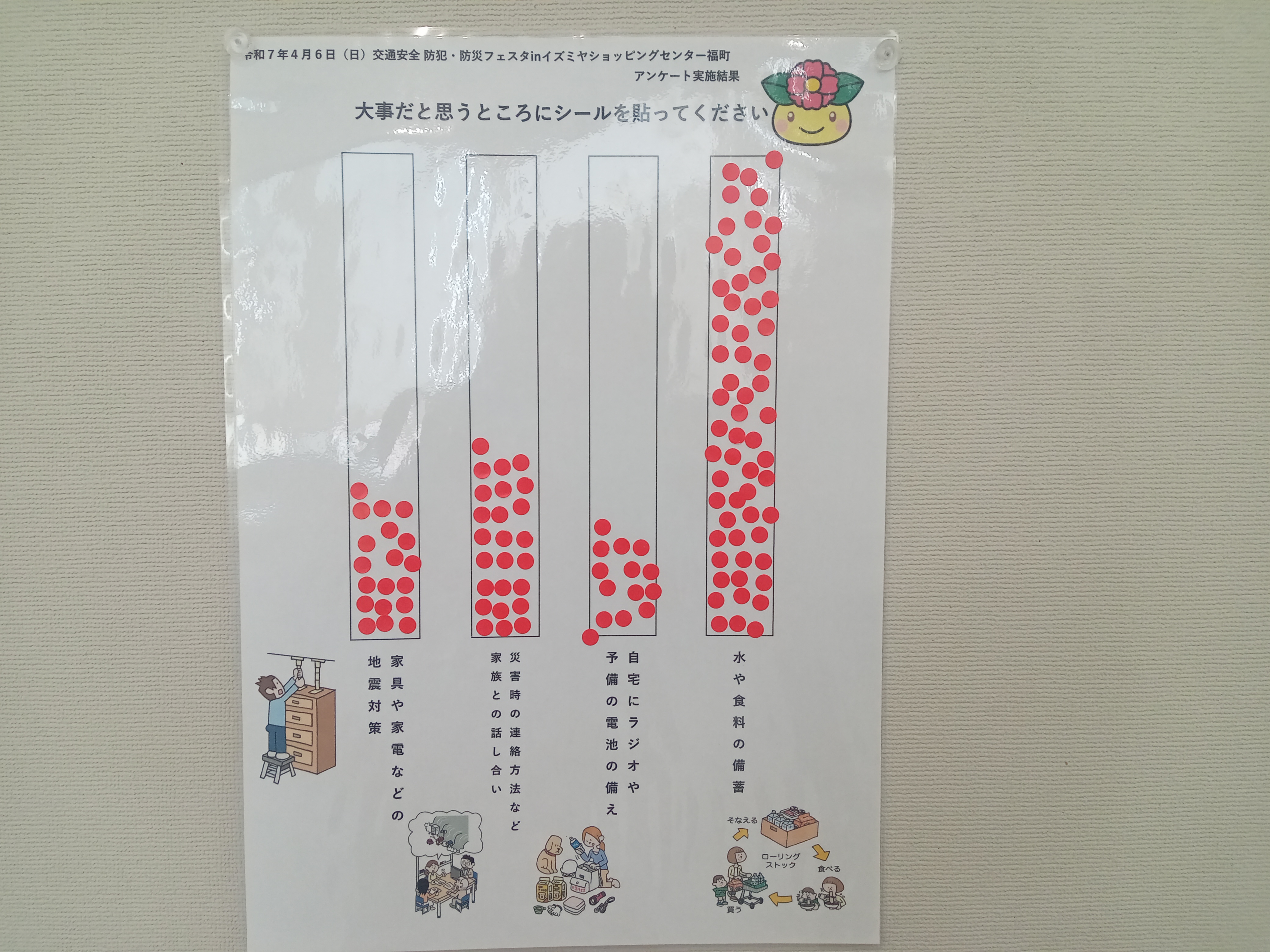 西淀川区役所 防災事業からは、イベントに参加されている方に、災害時に大事と思うことについて、ご意見を頂戴しました。