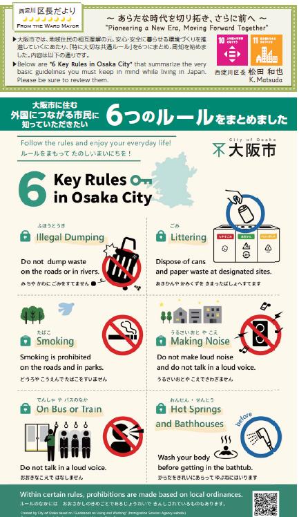 ▶Below are "6 Key Rules in Osaka City" that summarize the very basic guidelines you must keep in mind while living in Japan.